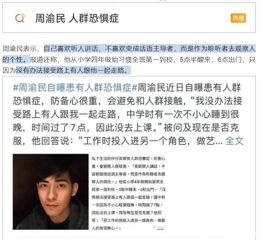 鲜为人知的是,周渝民曾在2023年坦诚分享自己长期受人群恐惧症困扰,对外界保持天然警觉,习惯性回避密集社交场景。