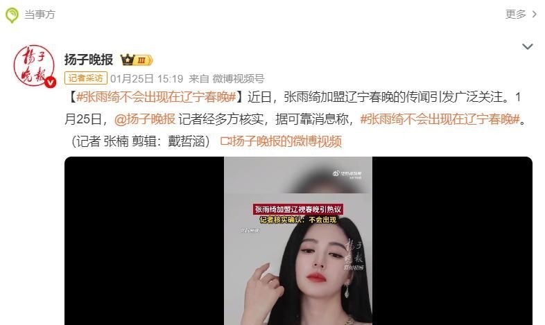 但随着代孕与婚史争议持续升温,多家媒体经多方信源交叉核实后确认:张雨绮最终确定缺席本届辽视春晚全部录制环节。